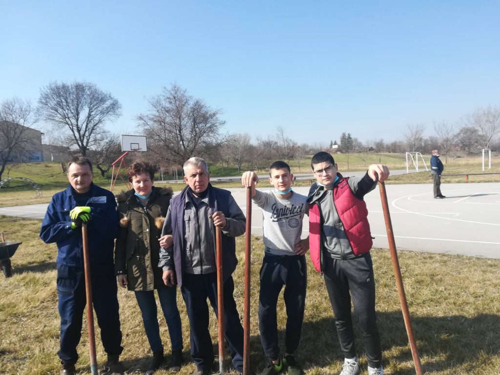 Након одржаних онлајн часова, наставници наше школе и чланови помоћног особља посадили су саднице младог јасена поред спортских терена. Сваког пролећа у нашој школи спроводи се озелењавање површина и декорација цвећем и цветним баштама. Пошто је ове године актуелна ситуација са пандемијом КОВИД-19 прекинула ангажовање наставника и ученика, чланови колектива су активности озелењавања привели крају.